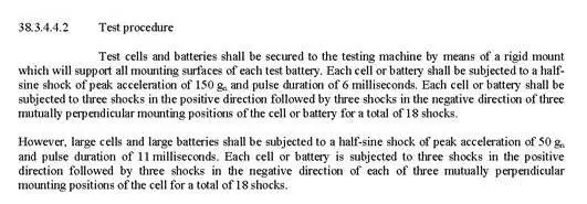 在修訂前加速度峰值是固定值:小電池150gn,大電池50gn。而新標準則是制定了公式,根據(jù)電池的重量來對應算出加速度并相對應的與150gn和50gn做對比后采用相應的加速度峰值。