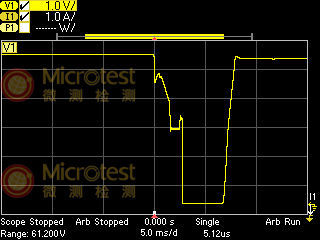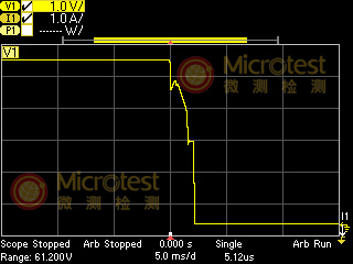 第一種情況:將電流提高至正常輸出電流的1.6倍1ms內(nèi),電壓降為0;