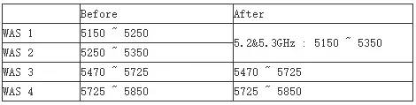 1. 自2018年6月27日起,WLAN 5GHz頻段變更,允許信道帶寬增加到160MHz,放寬了對功率和天線增益的要求。