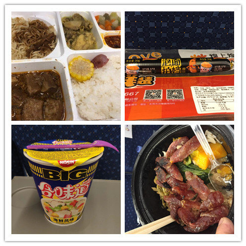 左上:高鐵盒飯,自稱舌尖上地美食,很貴,味道么不必多說