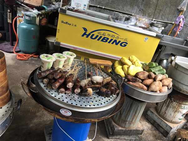 美食二:臘味(臘腸臘肉),每餐桌子上必定有一道,千戶苗寨商業(yè)街中還有街邊一根根串者賣的,吃起來有點(diǎn)嚇人啊!