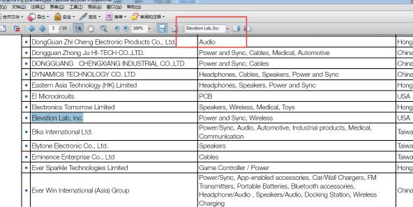 四、打開(kāi)下載的名錄,在查找欄輸入需要查找的公司英文名稱(chēng)(以Adobe軟件打開(kāi)為例)