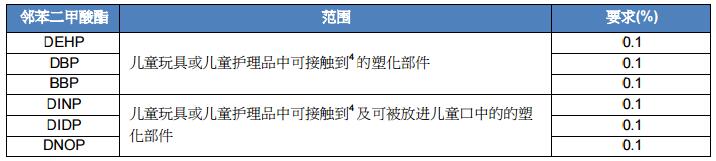 依據(jù)廣泛的文獻(xiàn)綜述 2,3,CPSC總結(jié)認(rèn)為用于兒童玩具和兒童護(hù)理用品中的聚丙烯(PP)、聚乙烯(PE)、耐沖擊聚苯乙烯(HIPS)及丙烯腈-苯乙烯-丁二烯共聚物(ABS)一般都不含濃度高于 0.1%之被禁的鄰苯二甲酸酯。因此,CPSC提出此提案建議這四種含有指定添加劑的塑料可豁免鄰苯二甲酸酯的第三方檢測。