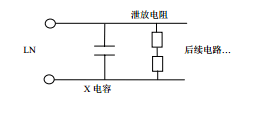 一般情況下,X 電容≥0.1μF,如果 X 電容≤0.1μF,依據(jù)標準要求,不進行該條款的測量。而泄放電阻一般是由 2-4 個貼片電阻組成,阻值通常為 220kΩ,380kΩ,450kΩ等。在該電路中,LN 兩端電壓在斷開電源插頭后的放電情況可以由以下公式計算得出: