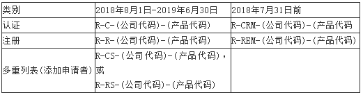 8.KC標簽變化如下,過渡期從2018年8月1日到2019年6月30日,在此之前新舊號碼都可以使用,之后需使用新規(guī)則下簽發(fā)的證書號。