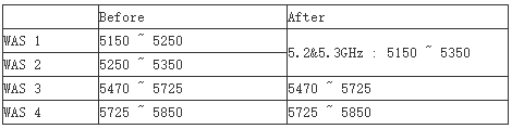 1.自2018年6月27日起,WLAN 5GHz頻段變更,允許信道帶寬增加到160MHz,放寬了對功率和天線增益的要求。
