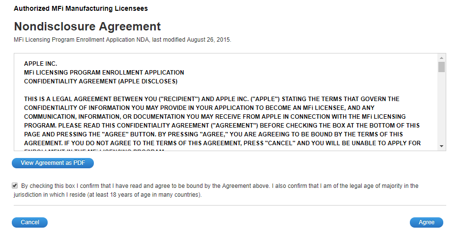 勾選上藍(lán)色標(biāo)簽”View Agreement as PDF“下方的同意協(xié)議,再點(diǎn)擊右下方藍(lán)色標(biāo)簽“Agree”。