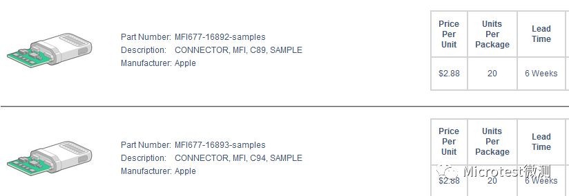 隨著USB-C to lightning數(shù)據(jù)線正式上市時間臨近,蘋果面向所有MFi會員企業(yè)通知了C89和C94樣品采購架構,開始正式提供樣品購買,同時樣品已經在蘋果指定供應商AVNET和ARROW網站上上線。