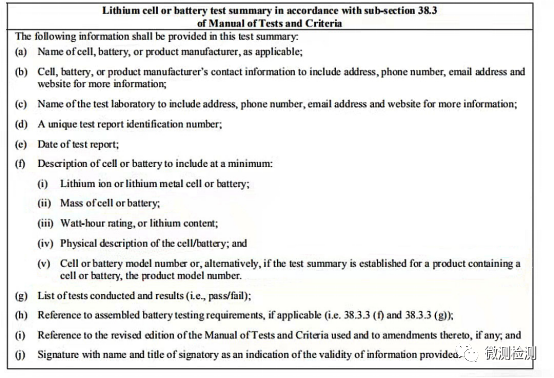 關(guān)于鋰電池檢測(cè)的第38.3章節(jié)的部分內(nèi)容修訂有兩處: "i驗(yàn)概要Lithium cell and battery testsummary" : 38.3.5()(i)"質(zhì)量(Mass) "更改為電池或電池組質(zhì)量(Mass of cell orbattery) ";