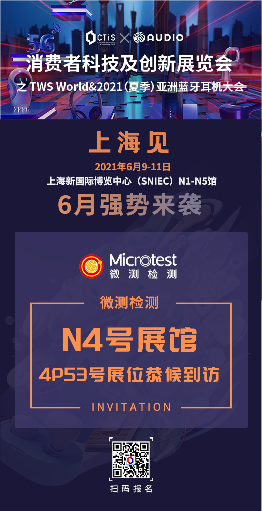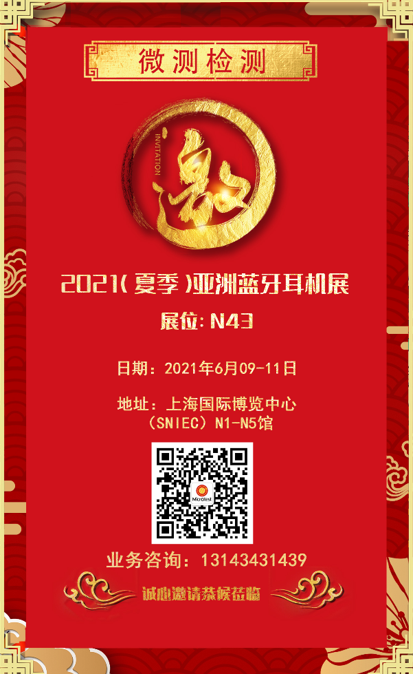 當(dāng)前位置:首頁11 » 微測(cè)檢測(cè)資訊中心 » 微測(cè)動(dòng)態(tài) » 請(qǐng)查收2021(夏季)亞洲藍(lán)牙耳機(jī)展邀請(qǐng)函~
