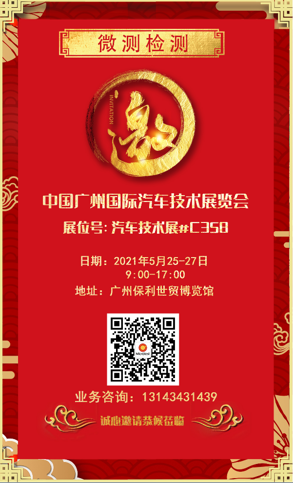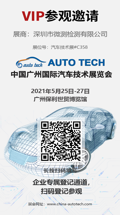 2021年5月25日-27日,深圳市微測檢測有限公司誠邀您參加中國廣州國際汽車技術展覽會,微測檢測在現場設有展位,展位號:汽車技術展#C358,歡迎各位蒞臨!