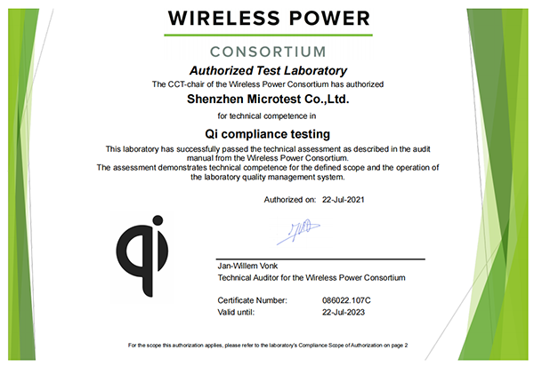 重磅來襲:微測檢測于2021年7月22日成功通過WPCQi1.3評審,成為中國大陸唯一獲無線充Qi1.3測試能力的ATL授權(quán)實驗室。