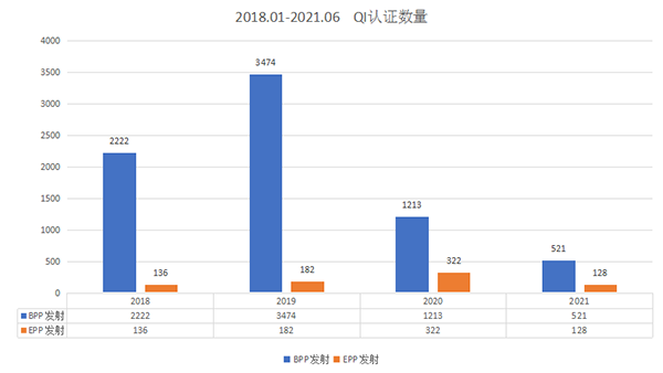 近年來,Qi標識也越來越受到消費者的認知與關(guān)注,通過QI認證的產(chǎn)品,安全性能方面得到很大保障,通過Qi認證的產(chǎn)品得到廣大消費者的信任。2018年01月-2021年06月Qi認證數(shù)量請參考下圖數(shù)據(jù):