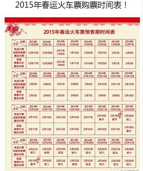 今年春運(yùn)火車票改成提前60天搶購了,為了讓大家能夠更順利的買到回家的票,公司將2015年春節(jié)放假通知提前公布。根據(jù)國家相關(guān)部門關(guān)于2015年春節(jié)假期安排的通知,結(jié)合公司實(shí)際情況,現(xiàn)將2015年春節(jié)放假的有關(guān)事項安排如下: