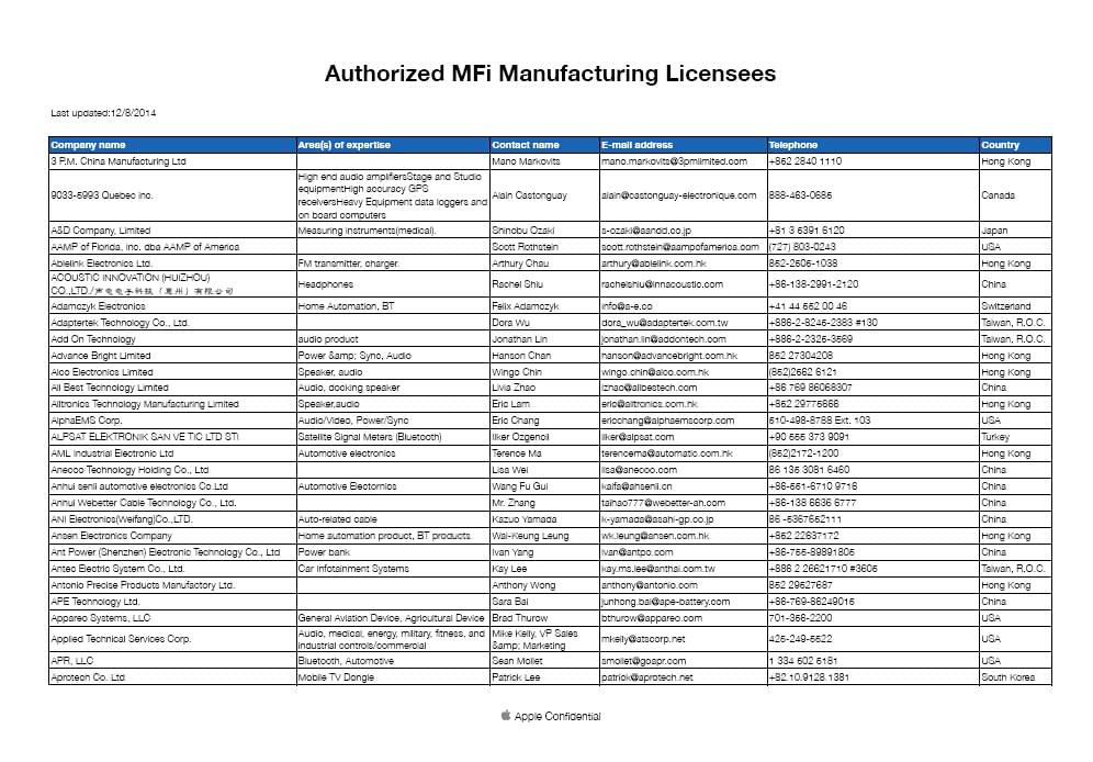 近來,很多企業(yè)開始做蘋果MFI認(rèn)證,大家都發(fā)現(xiàn)了一個(gè)共同的問題,那就是蘋果MFI認(rèn)證沒有證書,而是否通過了MFI認(rèn)證大家都不知道這么查詢到。這里深圳微測檢測來為大家介紹下到底這么查詢企業(yè)是否通過了蘋果MFI認(rèn)證。