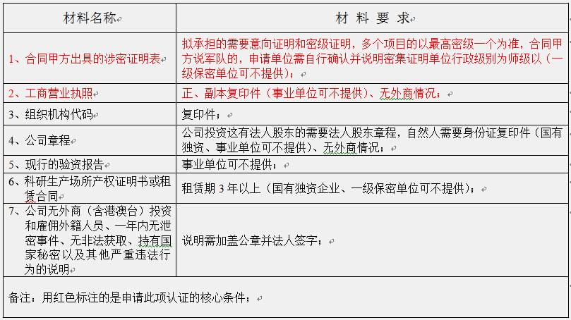 申請(qǐng)“保密”認(rèn)證準(zhǔn)備材料