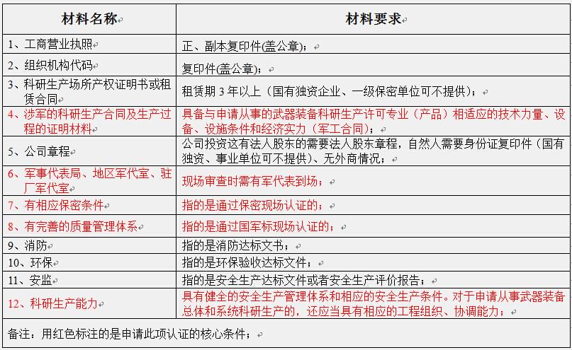 7、有與申請從事的武器裝備科研生產(chǎn)活動相適應(yīng)的保密資格。注:具體內(nèi)容請參考《武器裝備科研生產(chǎn)許可實施辦法》、《武器裝備科研生產(chǎn)許可管理條例》。